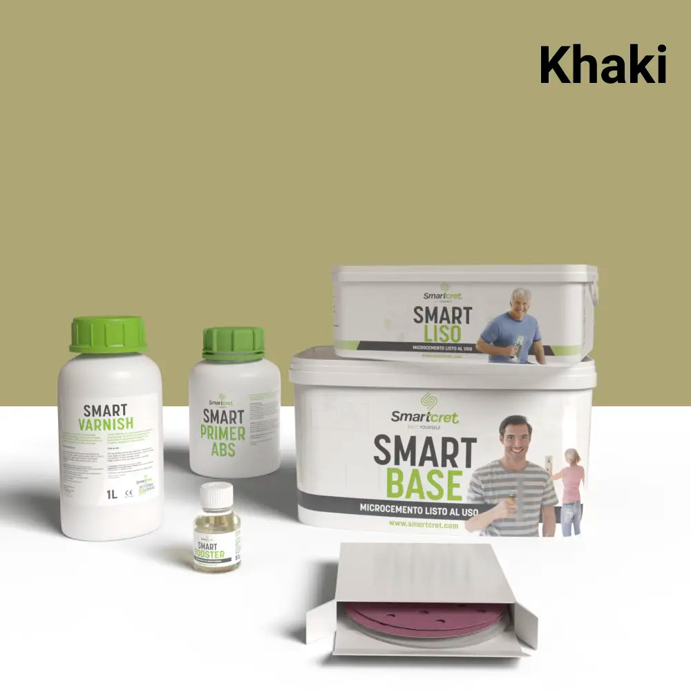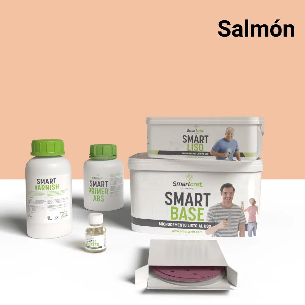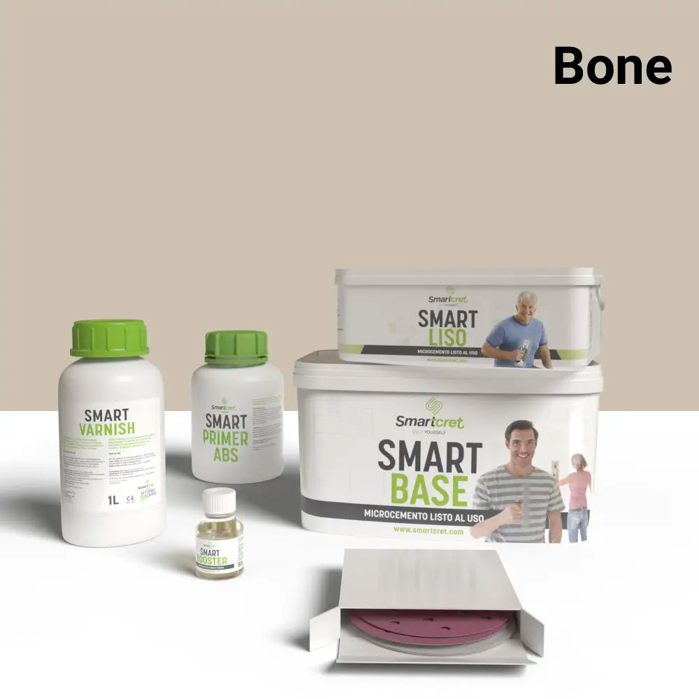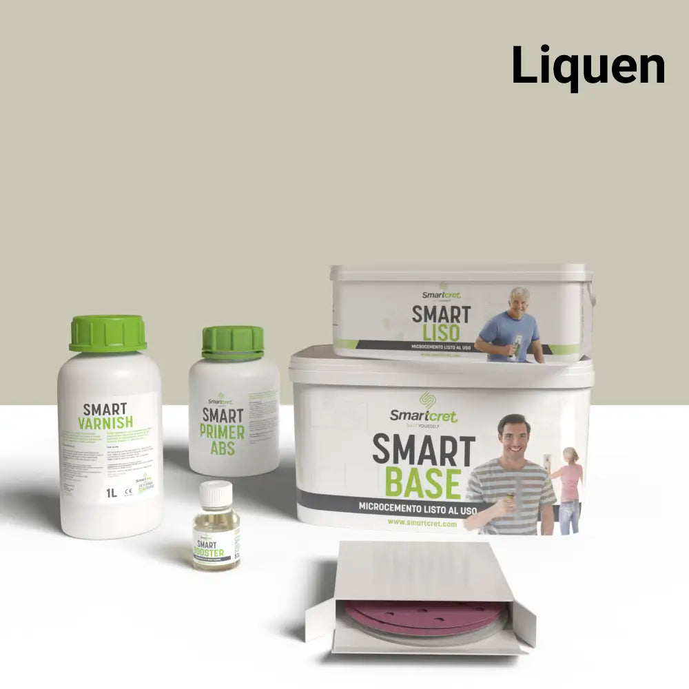 - 1 Smart Liso 3 kg: Gebrauchsfertiger Endmikrozement. Dieses pigmentierte Produkt wird nach Smart Base aufgetragen, hat eine feinere Granulatgröße und ist dafür verantwortlich, die gleichmäßige, glatte und weiche Ästhetik des Mikrozements zu erzeugen.