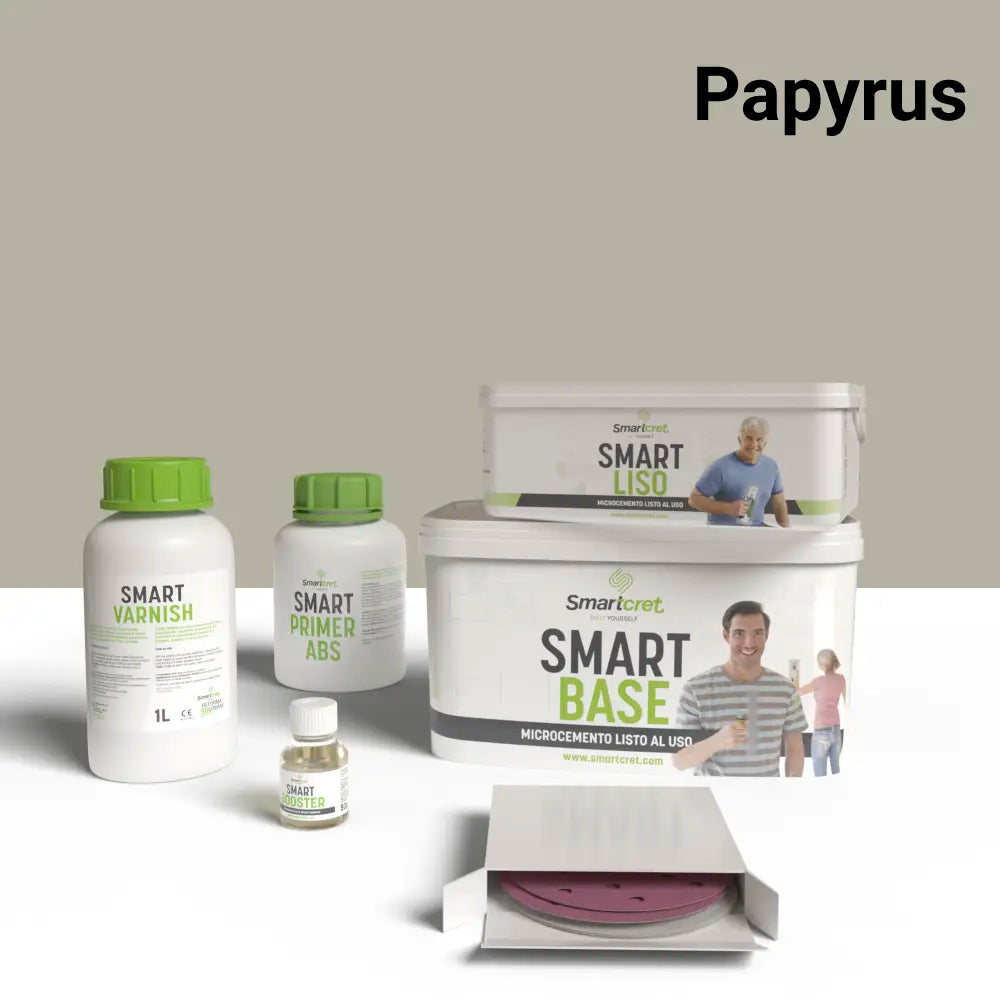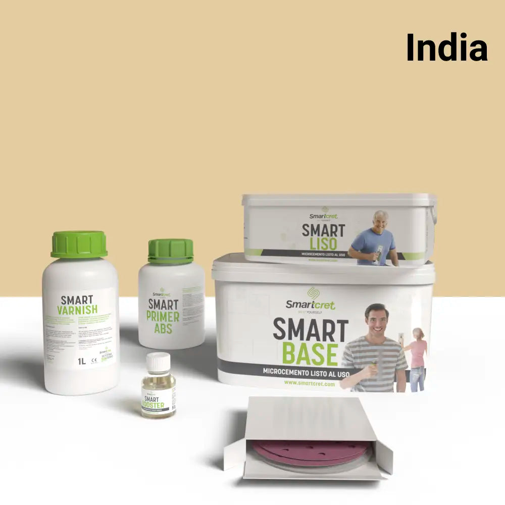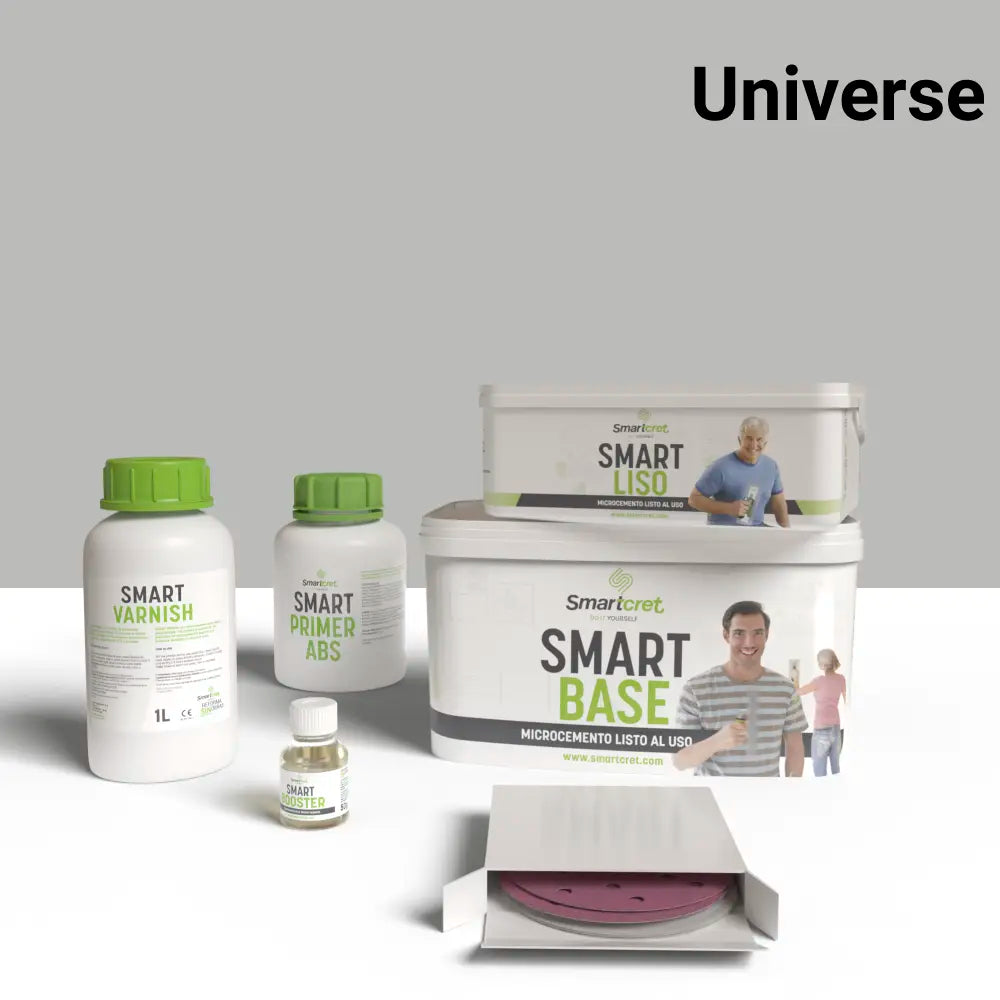 - 1 Smart Varnish 1 l: Gebrauchsfertiger wasserbasierter Polyurethanlack. Er versiegelt und schützt den Mikrozement vor äußeren Einflüssen wie Abrieb oder Wasserschäden. Er verbessert die Farbe der neuen Beschichtung und ist in matten und seidenmatten Ausführungen erhältlich.