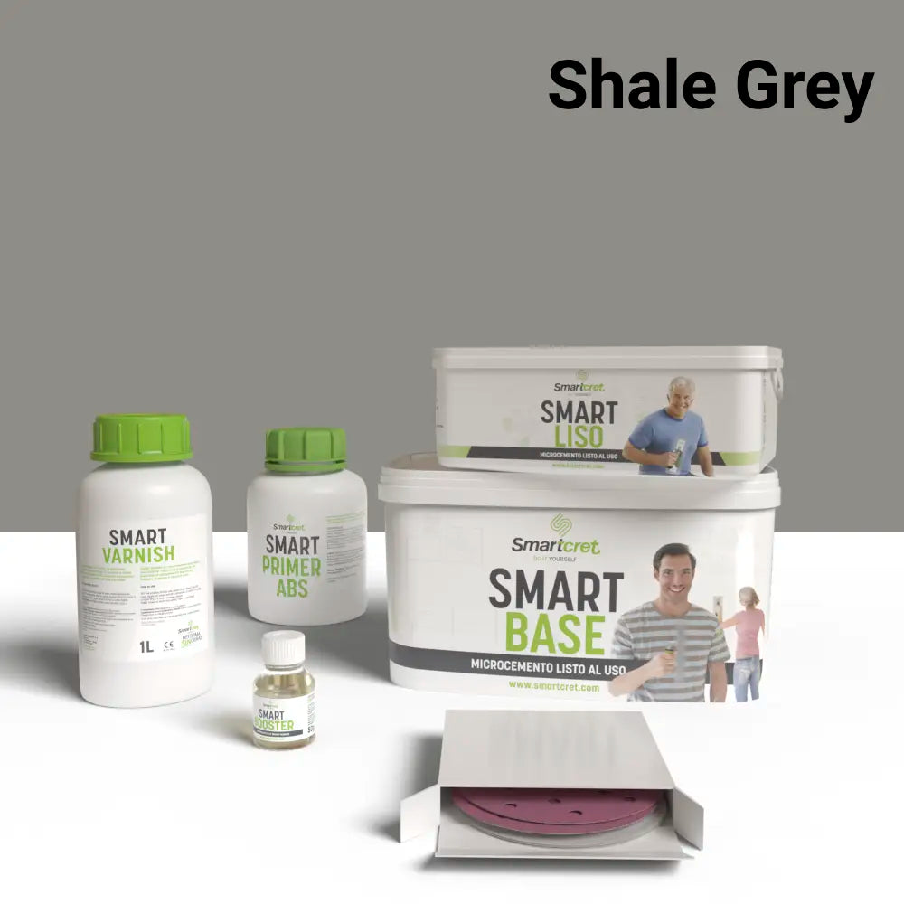 - 1 Smart Primer ABS 0.5 l: Wasserbasierte Acrylgrundierung. Dieses Produkt ist dafür konzipiert, die Haftung zwischen dem Untergrund und dem Mikrozement zu verbessern und eine gleichmäßige Absorption über die gesamte Oberfläche zu gewährleisten.